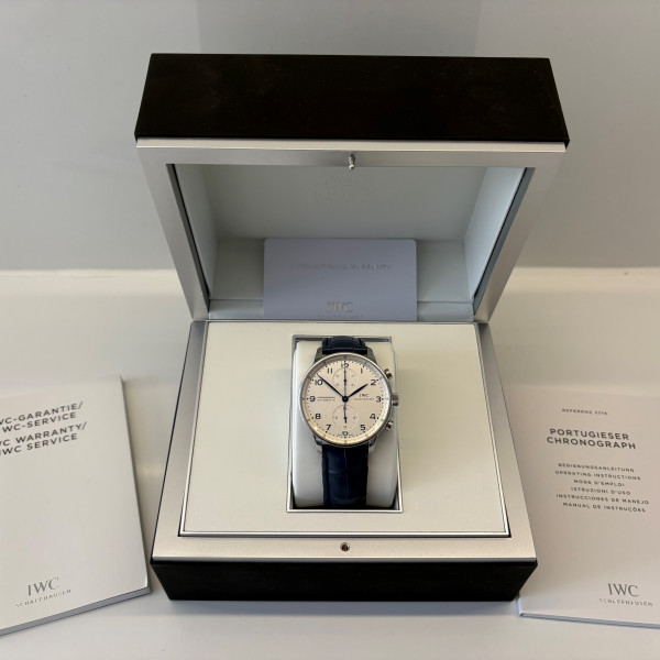IWC Portugieser Chronograph IW371446 White Dial Leather Strap 41mm Automatic