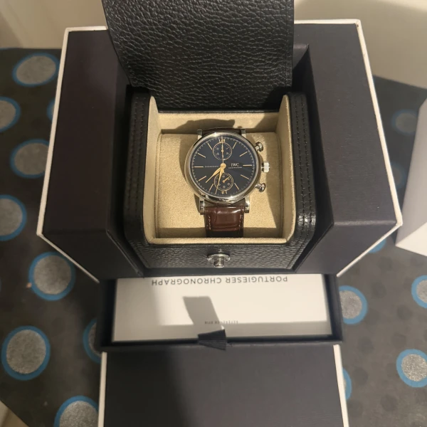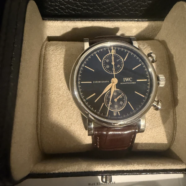 IWC Portofino Chronograph IW391404 Black Dial Stainless Steel Case Leather Strap