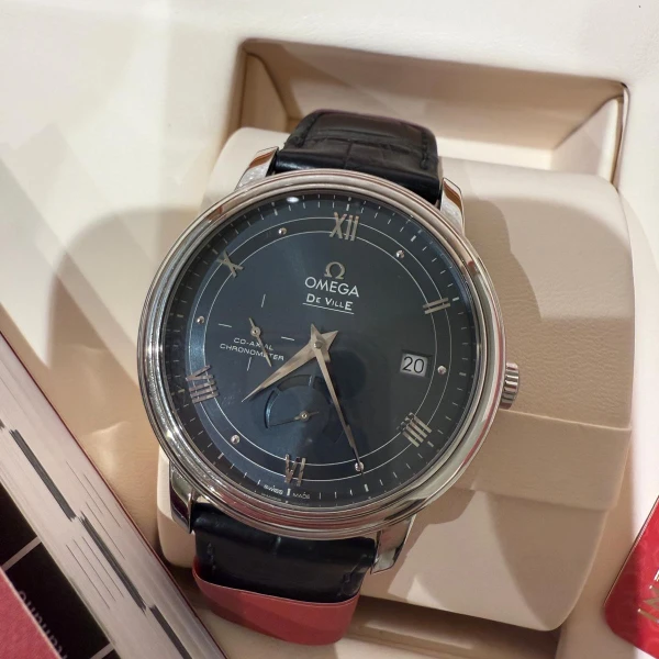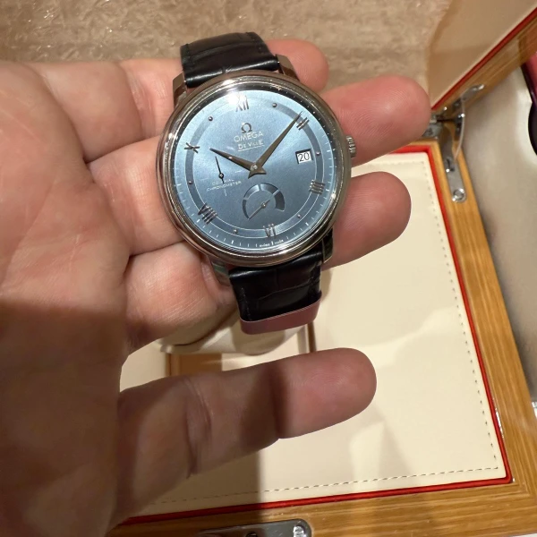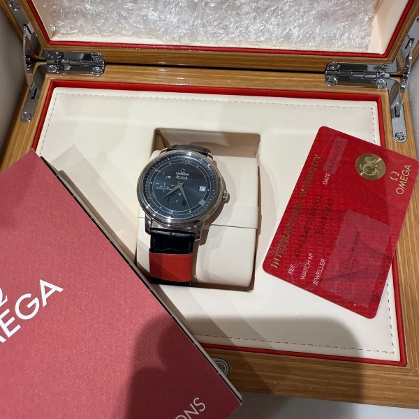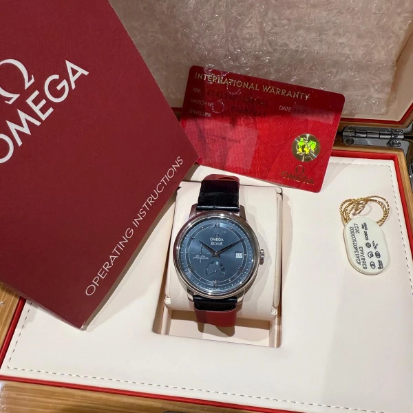 Omega De Ville 424.13.40.21.03.002 Blue Dial Leather Strap Stainless Steel Co-Axial Automatic Dress Watch