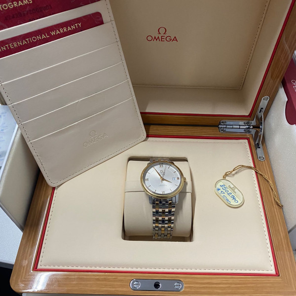 Omega De Ville Prestige 424.20.37.20.02.001 Silver Dial Yellow Gold Steel Bracelet Automatic Watch