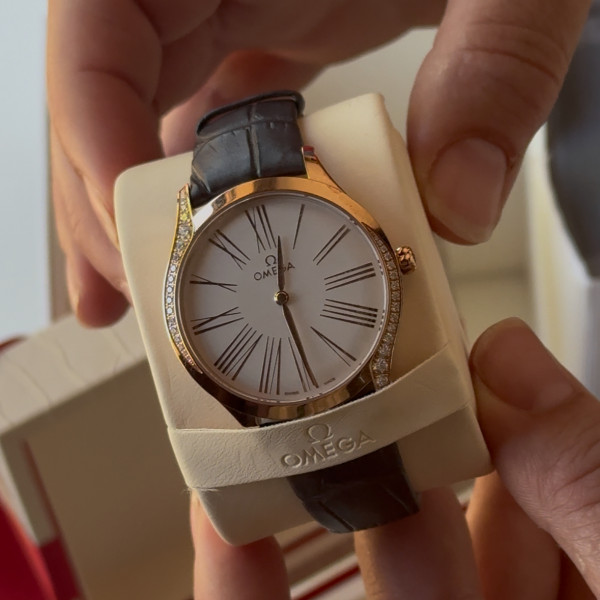 Omega De Ville Trésor 428.58.36.60.02.001 White Dial Sedna Gold 36mm Leather Strap