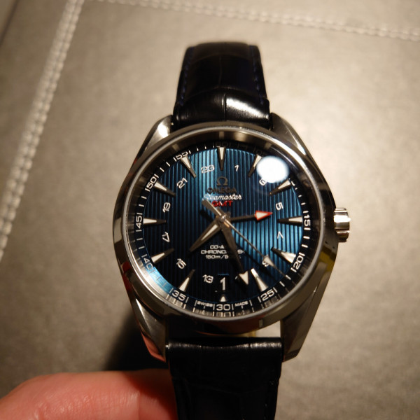 Omega Seamaster Aqua Terra 231.13.43.22.03.001 Stainless Steel Blue Dial Leather Strap 43mm GMT Automatic