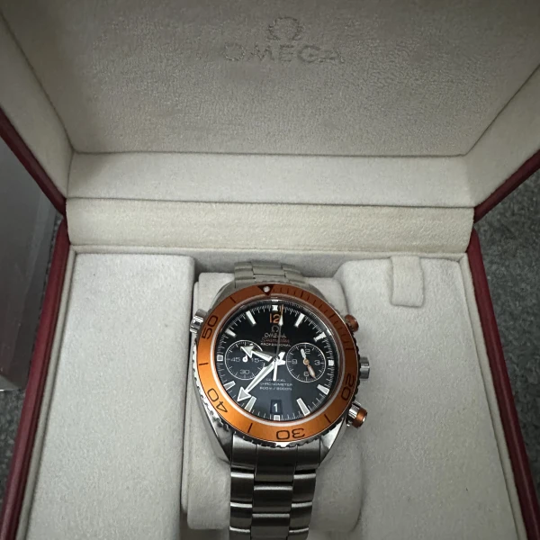 Omega Seamaster Planet Ocean Chronograph 232.30.46.51.01.002 Black Dial Orange Bezel Stainless Steel