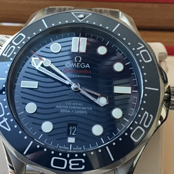 Omega Seamaster Professional 42mm with blue wave dial, steel bracelet, Master Chronometer Calibre 8800 and 300m water resistance.