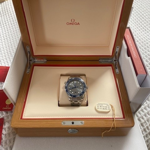 Omega Seamaster 210.30.42.20.06.001 stainless steel with grey wave dial, Co-Axial Master Chronometer movement and 300m professional dive performance.