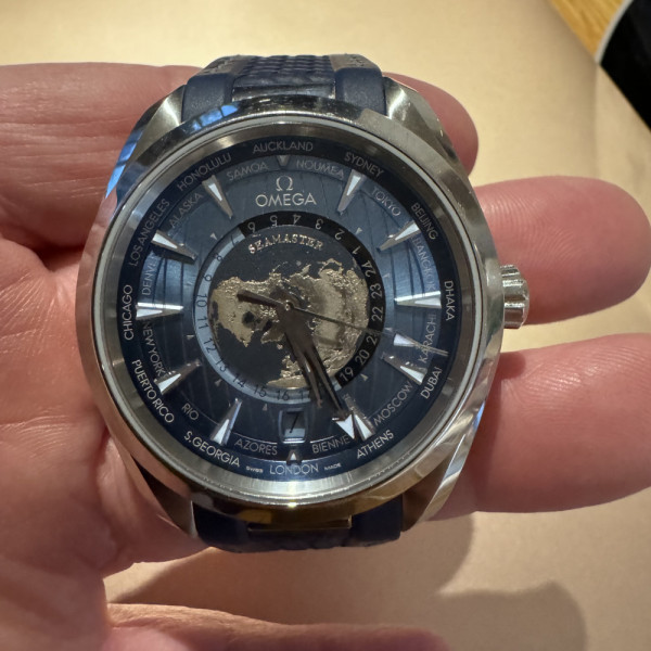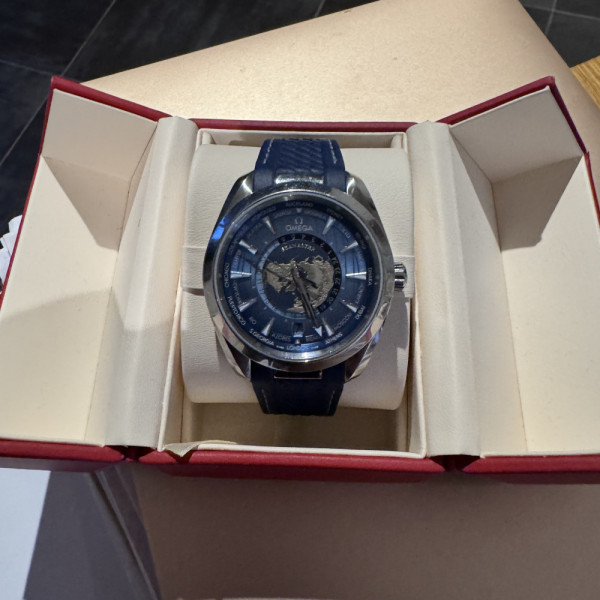 Omega Seamaster Aqua Terra Worldtimer GMT 220.12.43.22.03.001 Blue Dial Titanium Case 43mm Rubber Strap