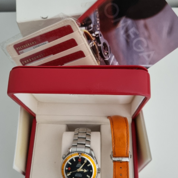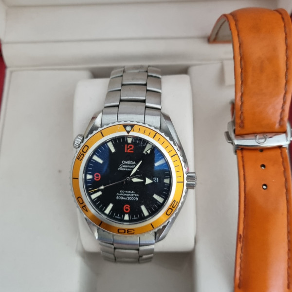Omega Seamaster Planet Ocean 2208.50.00 Black Dial Orange Bezel Steel Bracelet Automatic Dive Watch