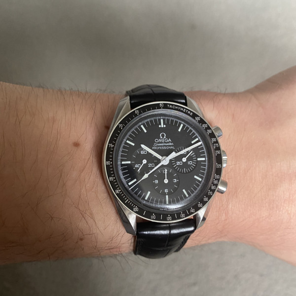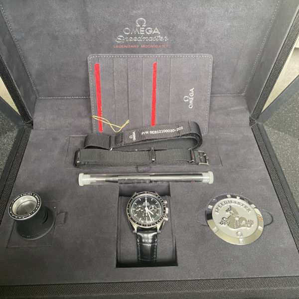 Omega Speedmaster 311.33.42.30.01.001 Black Dial Leather Strap Stainless Steel