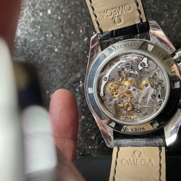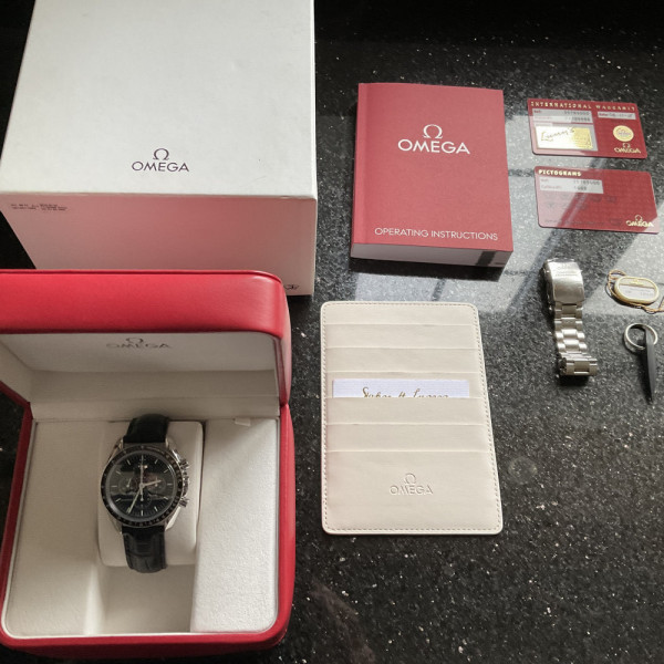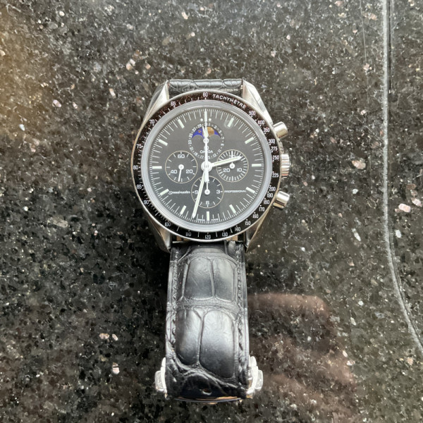 Omega Speedmaster Moonphase 3576.50.00 Black Dial Leather Strap Stainless Steel