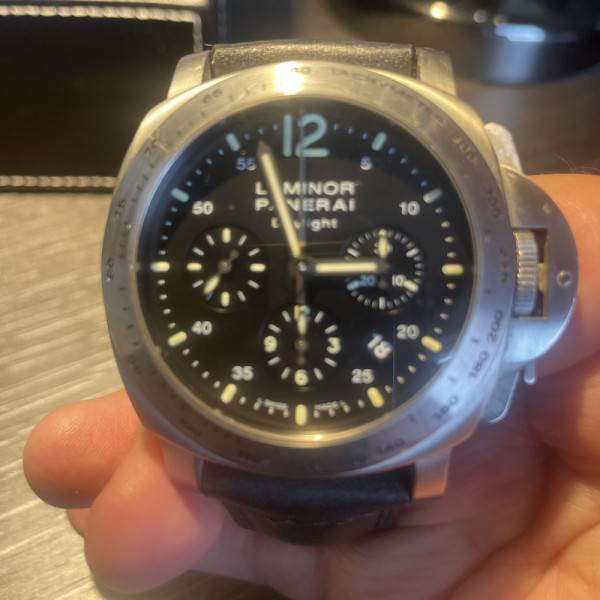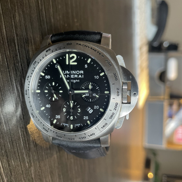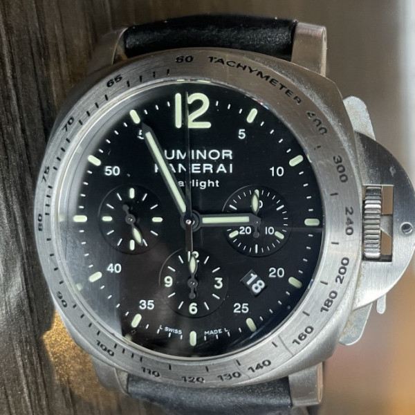 Panerai Luminor Chronograph PAM00250 Black Dial Leather Strap