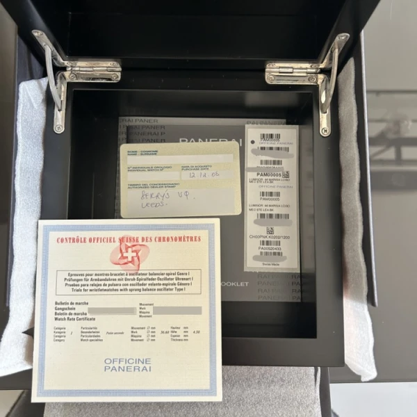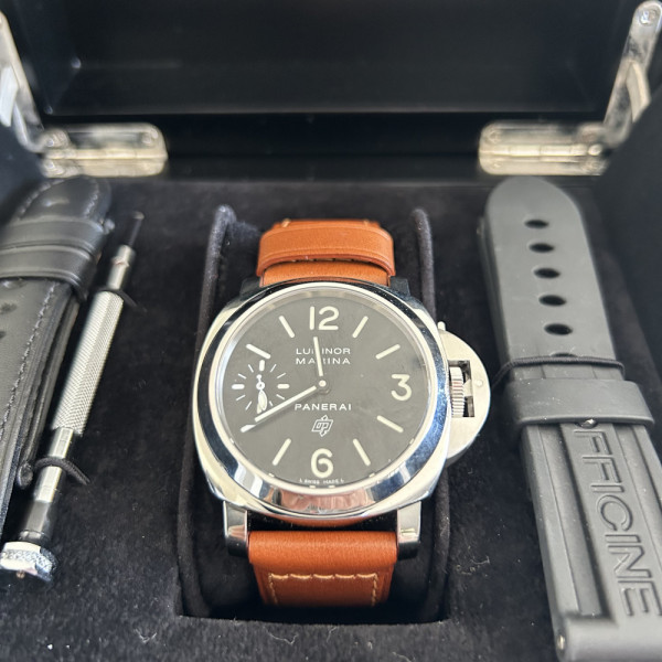 Panerai Luminor Marina Logo Pam00005 Black Dial 44mm Stainless Steel Manual Wind Rubber Strap Watch