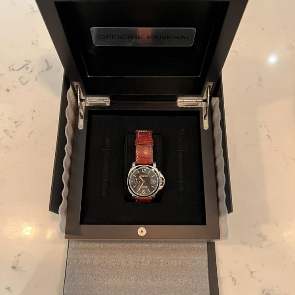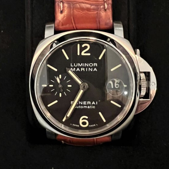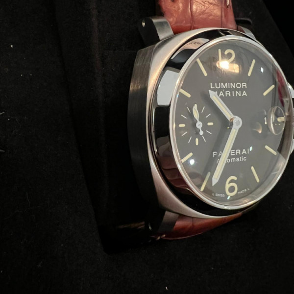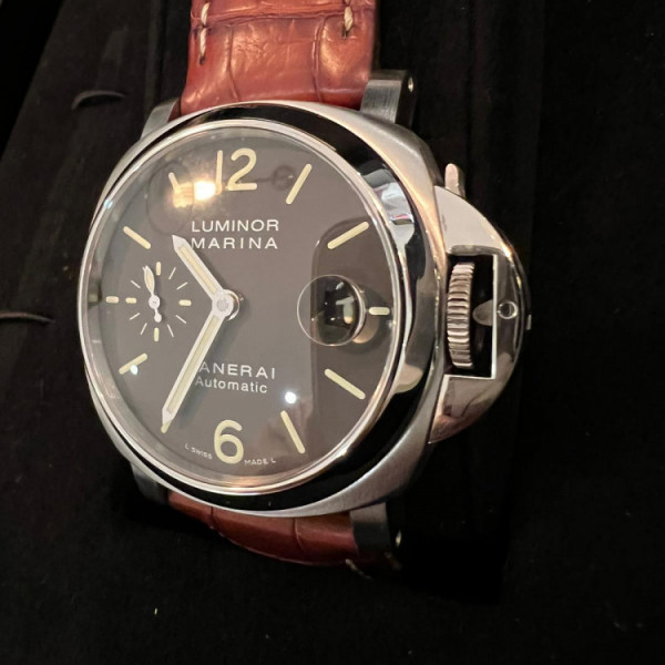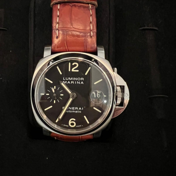Panerai Luminor Marina Pam00048 Black Dial Stainless Steel 40mm Automatic Brown Leather Strap Watch