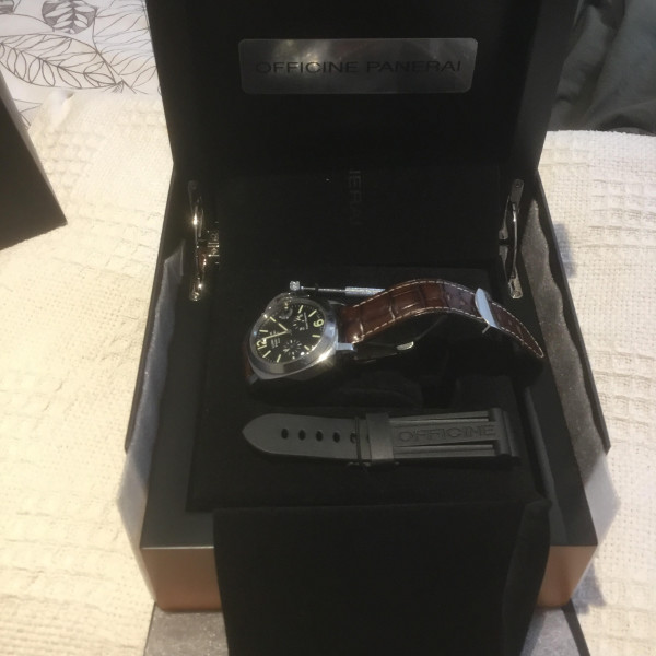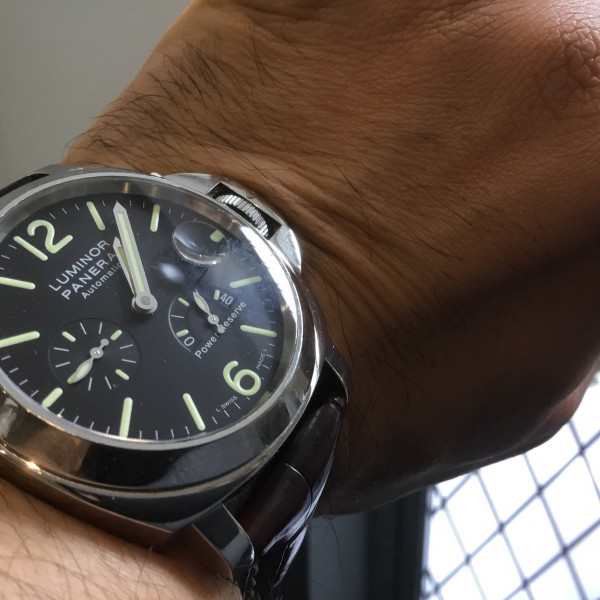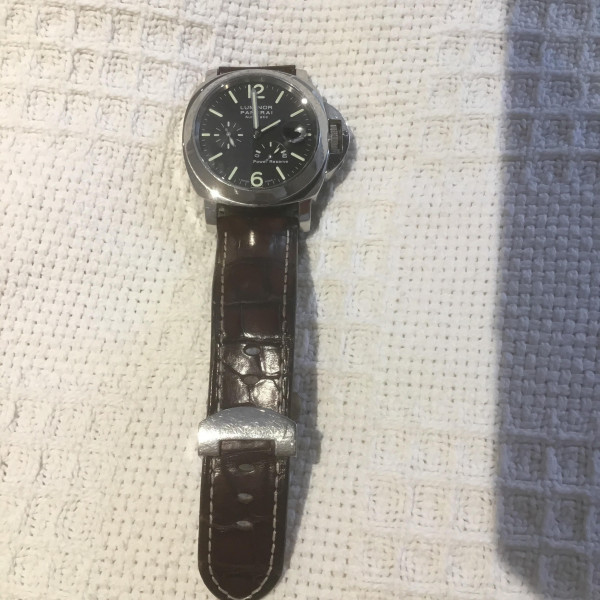 Panerai Luminor PAM0090 Stainless Steel Black Dial Leather Strap 44mm Automatic