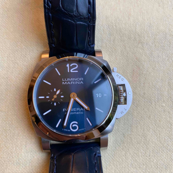 Panerai Luminor Marina PAM01270 Blue Sunburst Dial Automatic 40mm Stainless Steel Leather Strap