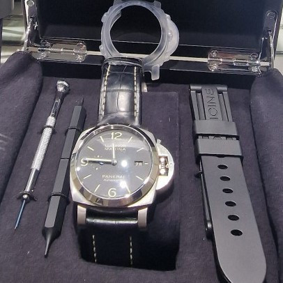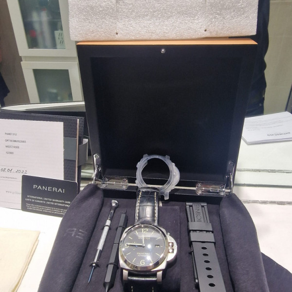 Panerai Luminor Marina PAM01312 Black Dial Steel Case Automatic Leather Strap 44mm
