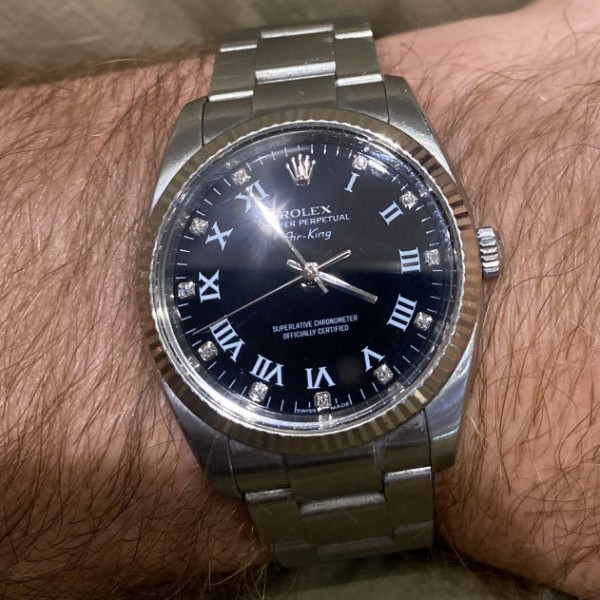 Rolex Air-King 114234 Black Dial 34mm Stainless Steel with White Gold Fluted Bezel