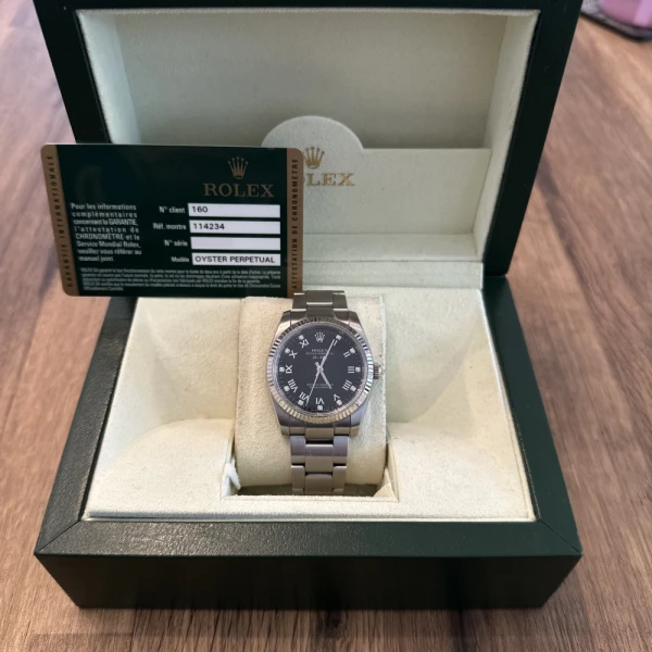 Rolex Datejust 114234 Black Dial White Gold Fluted Bezel 34mm