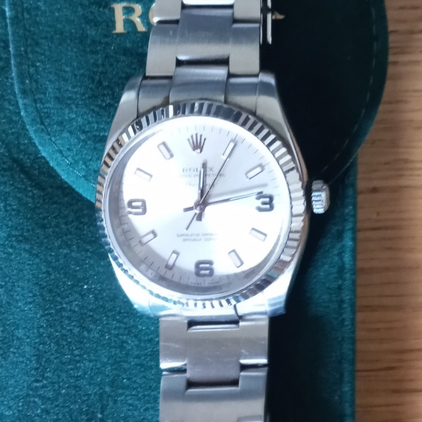 Rolex Air-King 114234 Silver Dial Oyster Bracelet 34mm White Gold Bezel