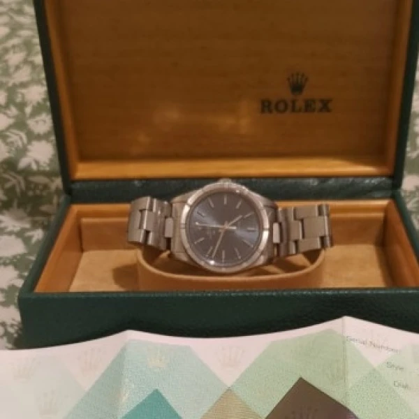 Rolex Air King 14010 Blue Dial Engine Turned Bezel Oyster Bracelet Stainless Steel