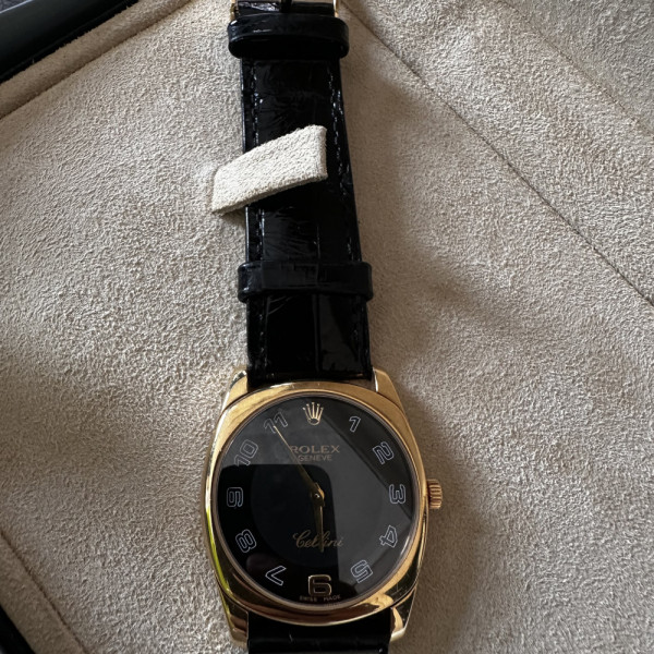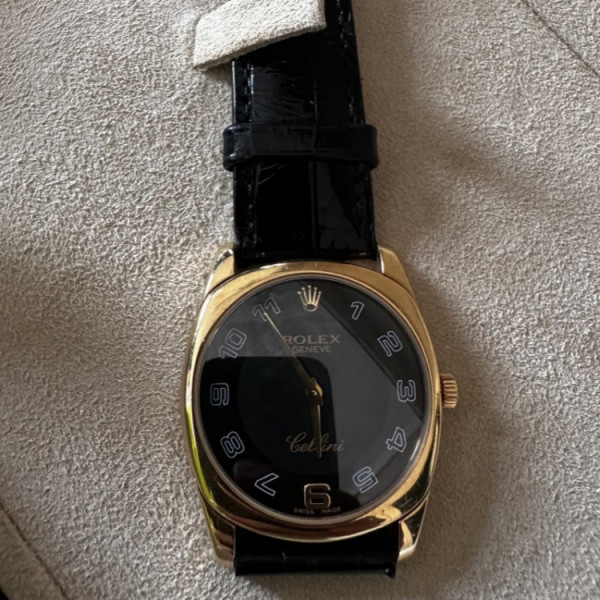 Rolex Cellini Danaos 4233/8 Black Dial 18k Yellow Gold Leather Strap