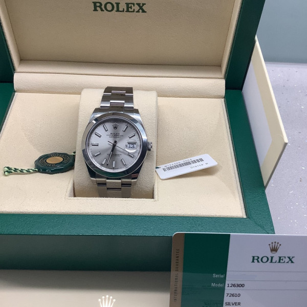 Rolex Datejust 41 126300 Silver Dial Smooth Bezel Stainless Steel Oyster Bracelet Automatic Watch