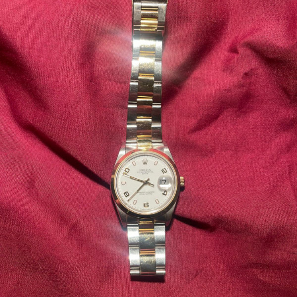 Rolex Date 15203 White Dial Yellow Gold Bezel Oyster Bracelet 34mm