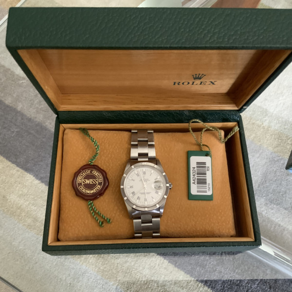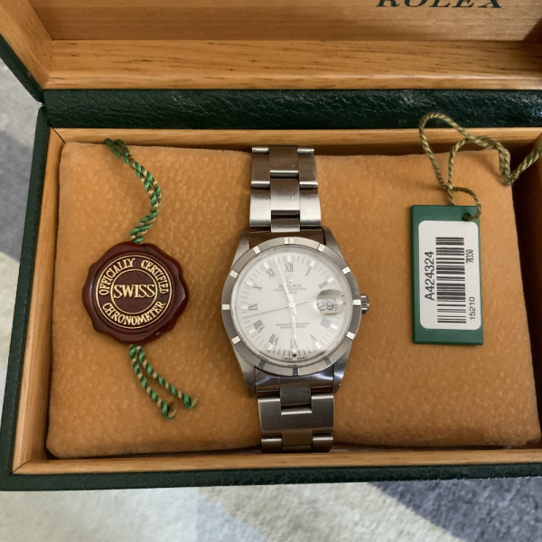 Rolex Date 15210 Silver Roman Dial Stainless Steel Oyster Bracelet 34mm