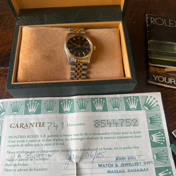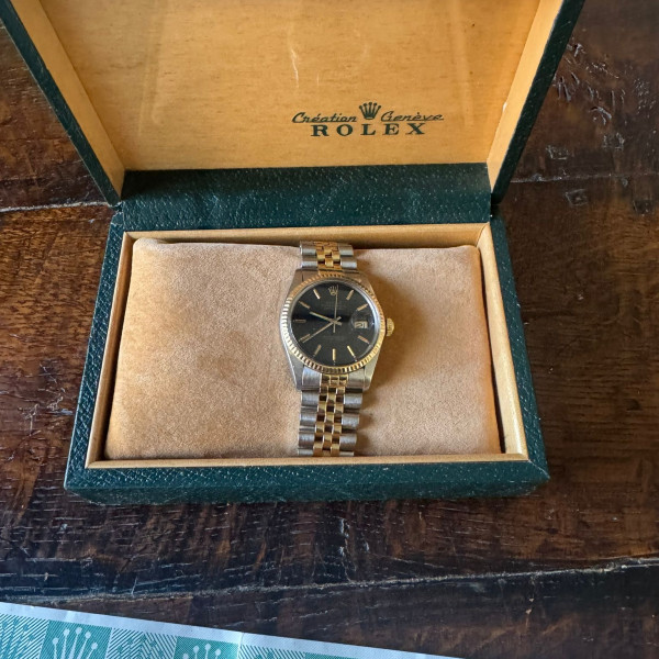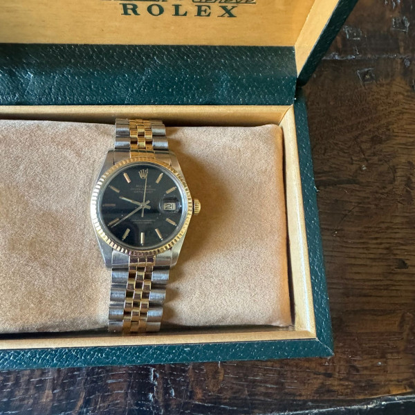 Rolex Datejust 16013 Black Dial Stainless Steel Yellow Gold Fluted Bezel Jubilee Bracelet 36mm