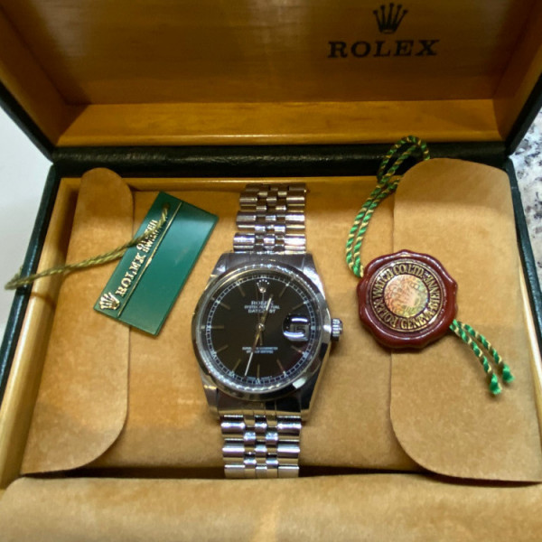 Rolex Datejust 16200 Black Dial Stainless Steel Smooth Bezel Jubilee Bracelet 36mm