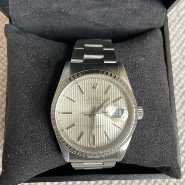 Rolex Datejust 16220 Silver Tapestry Dial Stainless Steel Oyster Bracelet 36mm