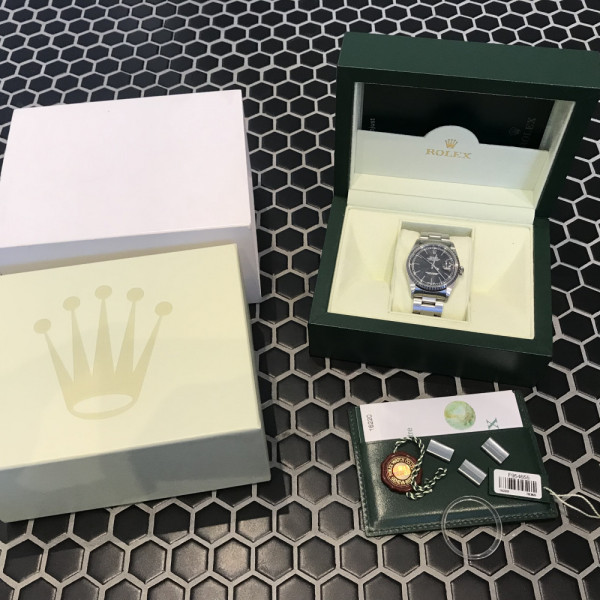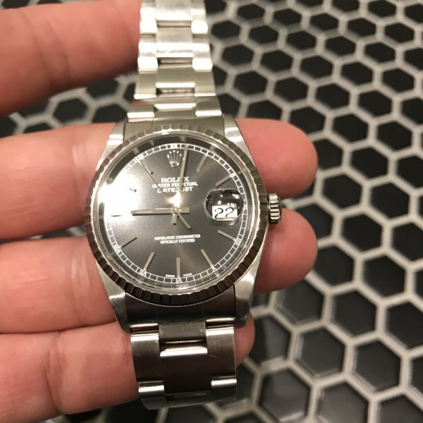 Rolex Datejust 16220 Black Dial 36mm Stainless Steel Engine-Turned Bezel Oyster Bracelet