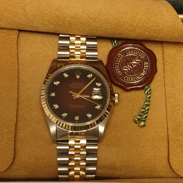 Rolex Datejust 16233 Red Vignette Dial Jubilee Bracelet 36mm Stainless Steel and Yellow Gold