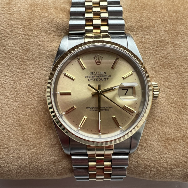 Rolex Datejust 16233 Champagne Dial Stainless Steel and Yellow Gold Jubilee Bracelet 36mm