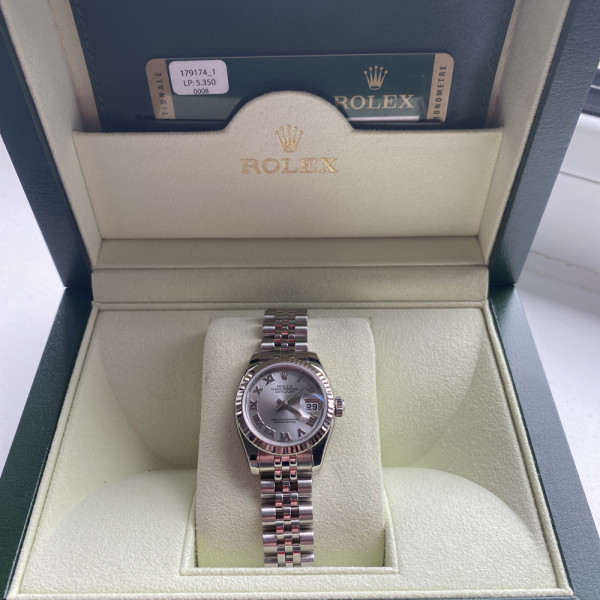 Rolex Datejust 179174 Silver Dial 26mm Stainless Steel White Gold Fluted Bezel Jubilee Bracelet