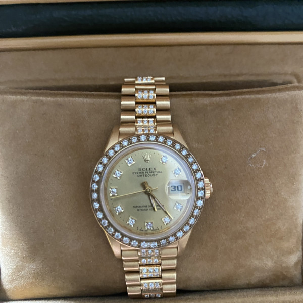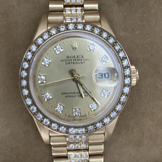 Rolex Lady-Datejust 69178 Champagne Dial Diamond Bezel and Diamond President Bracelet 26mm
