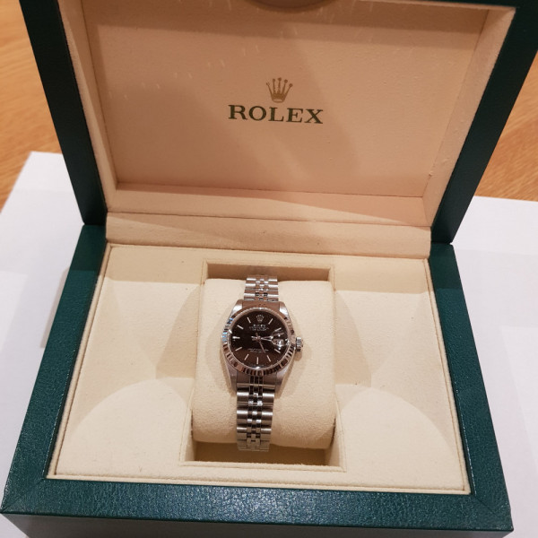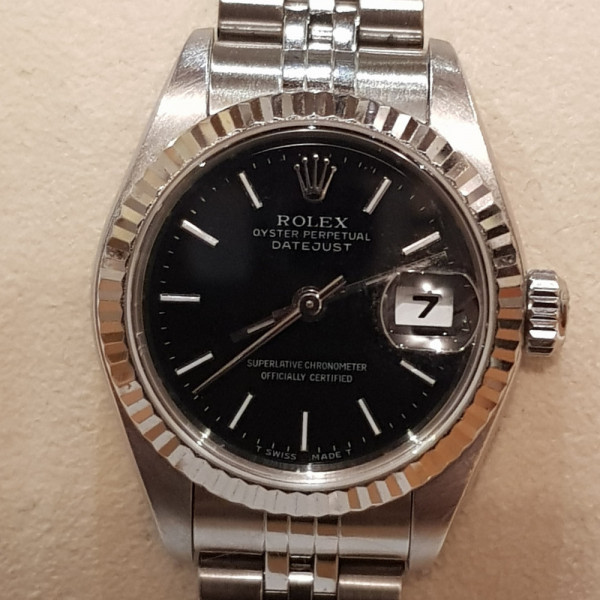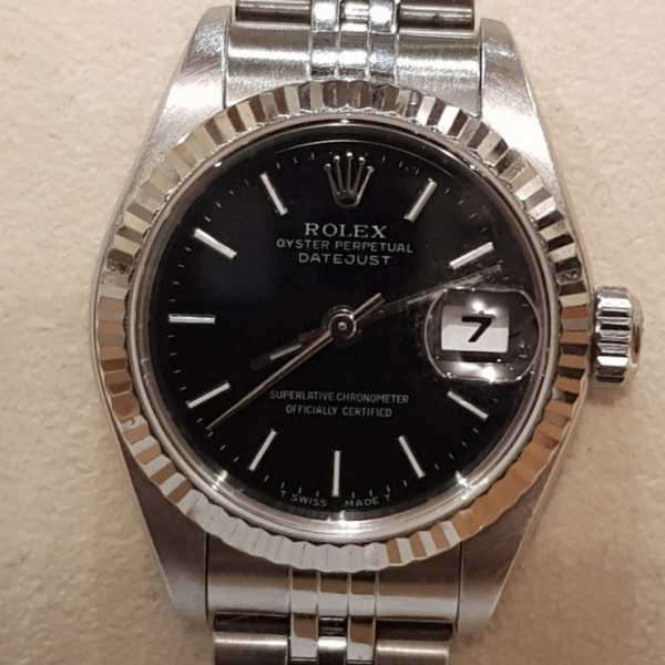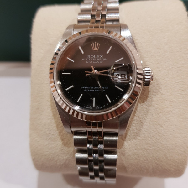 Rolex Datejust 79174 Black Dial White Gold Bezel Jubilee Bracelet 26mm