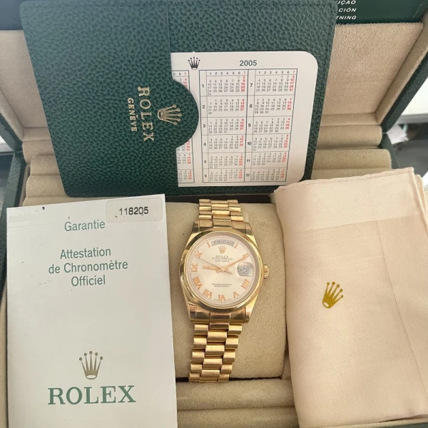 Rolex Day-Date 118205 Rose Gold Roman Dial 36mm President Bracelet Automatic Watch