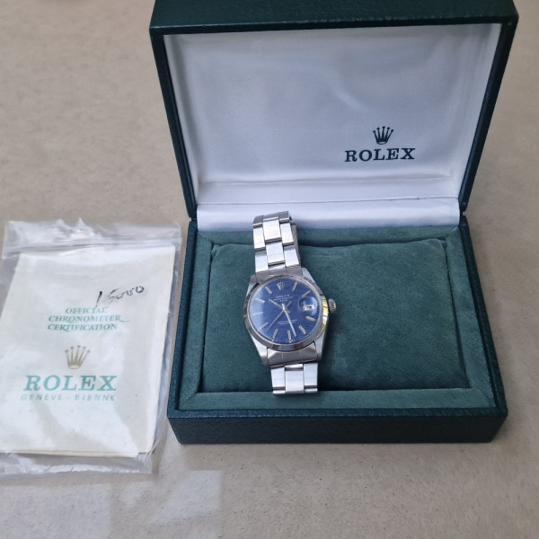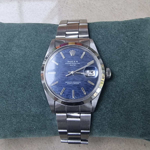 Rolex Date Vintage 15000 Blue Dial Oyster Bracelet 34mm Stainless Steel