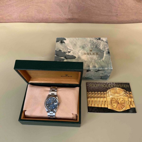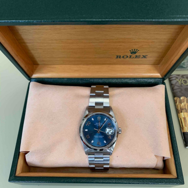 Rolex Date 15200 Blue Arabic Baton Dial Stainless Steel Oyster Bracelet 34mm