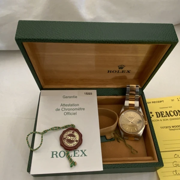 Rolex Oyster Perpetual Date 15233 Champagne Dial Steel and Yellow Gold Oyster Bracelet 34mm