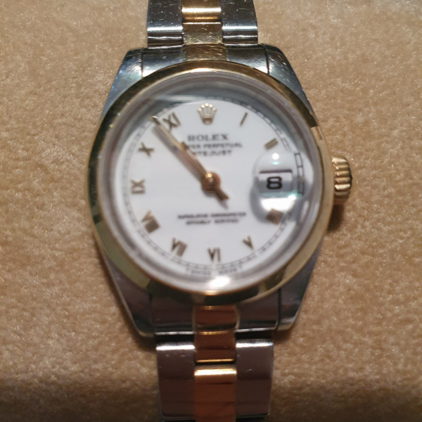 Rolex Datejust 69173 White Roman Dial Oyster Bracelet Stainless Steel and Gold