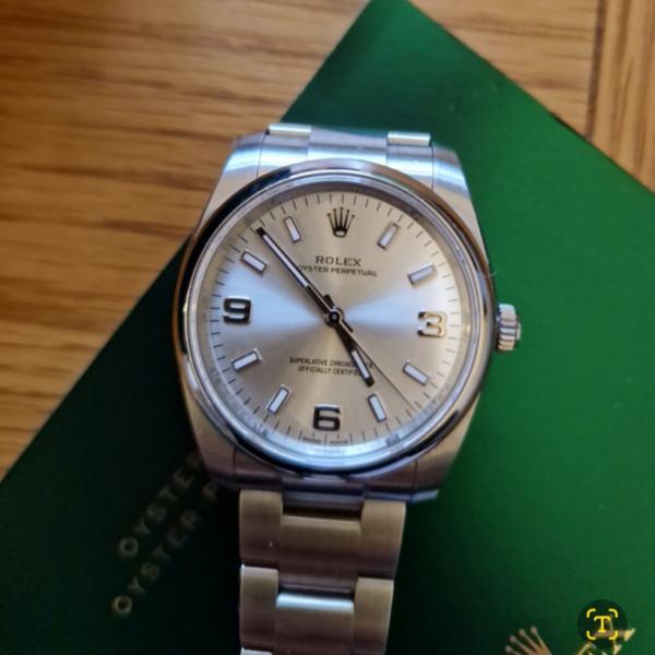 The rolex oyster perpetual 114200 silver dial oyster bracelet delivers a straightforward blend of durability, precision, and understated refinement. Built around a 34mm stainless steel case with the signature silver sunburst dial, this model keeps things clean—no gimmicks, no fluff, just a reliable timepiece powered by the robust automatic movement Rolex is known for. The smooth bezel, solid Oyster bracelet, and minimalist index layout create a crisp, versatile look that fits any setting. Its balanced proportions make it a smart daily wear option for collectors who don’t want loud styling but still expect high-grade engineering. With dependable performance and timeless aesthetics, this reference remains a practical, long-term purchase for someone who values function and form without unnecessary complication.