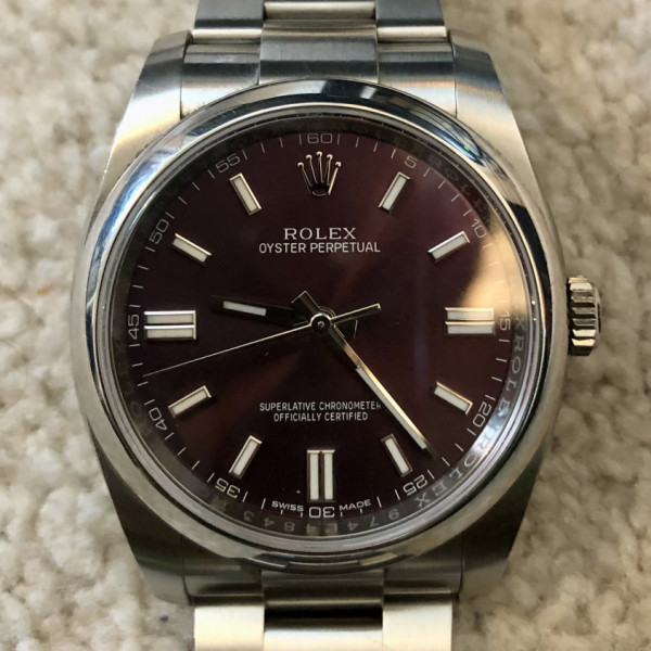 Rolex Oyster Perpetual 116000 Purple Dial Stainless Steel 36mm Automatic Watch
