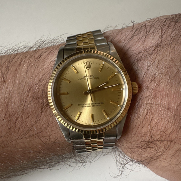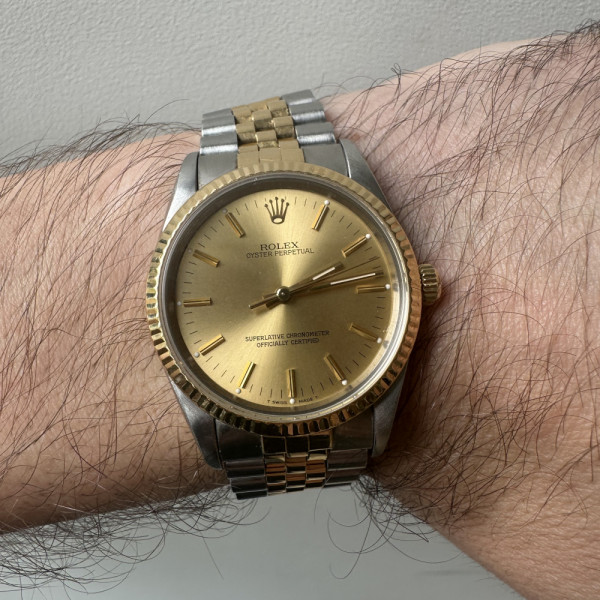 Rolex Oyster Perpetual Date 14233 Champagne Dial Jubilee Bracelet 34mm Steel & Yellow Gold Automatic