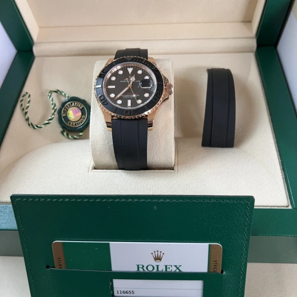 Rolex Yacht-Master 116655 40mm Black Dial Everose Gold Watch with Oysterflex Bracelet