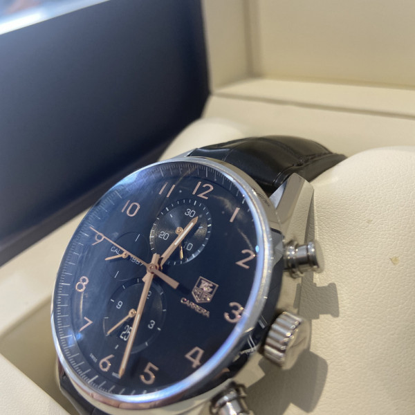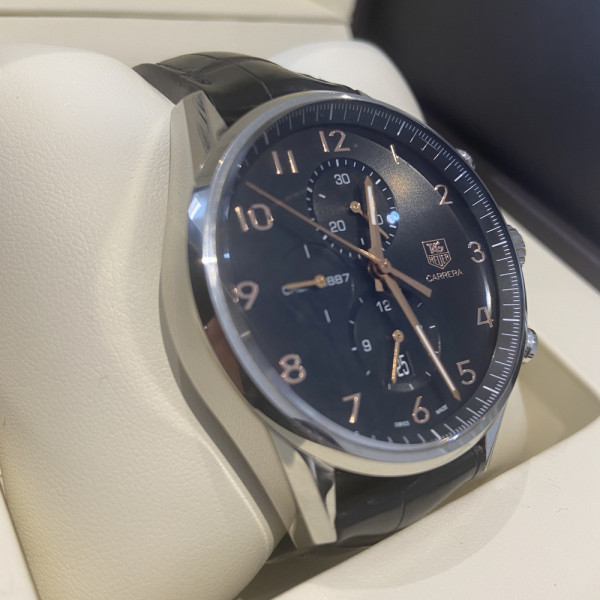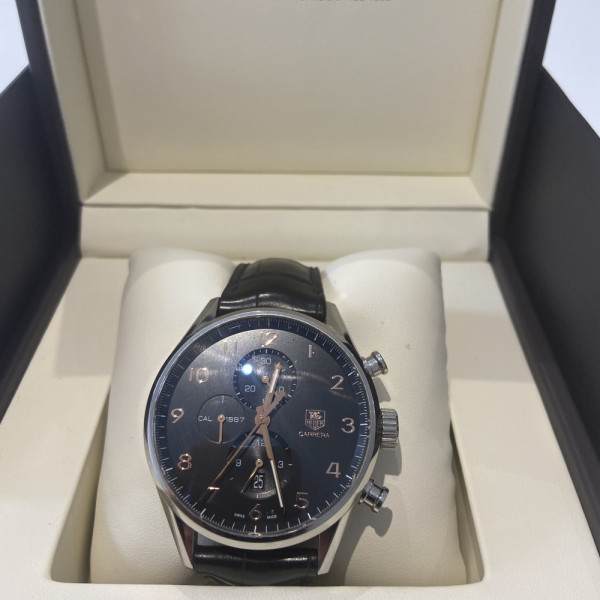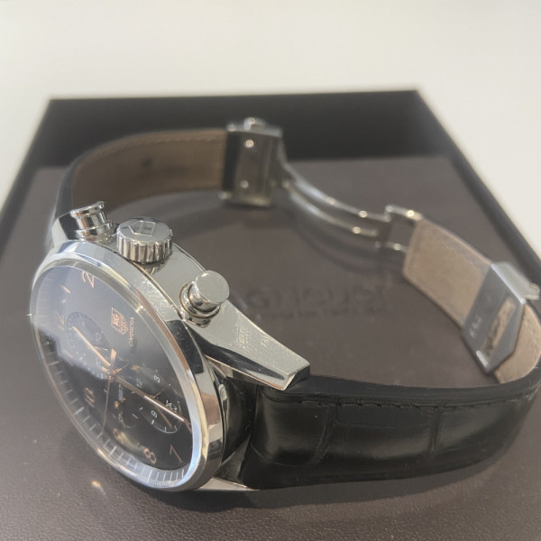Tag Heuer Carrera CAR2014.FC6235 Black Dial Stainless Steel 43mm Automatic Chronograph Leather Strap Watch