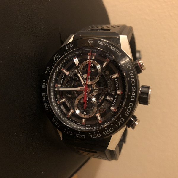 TAG Heuer Carrera CAR2A1Z.FT6044 Black Skeleton Dial Rubber Strap Automatic Chronograph Watch