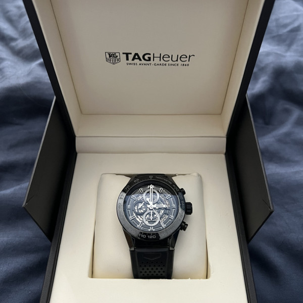 Tag Heuer Carrera Ceramic CAR2A90.FT6071 Black Dial Rubber Strap