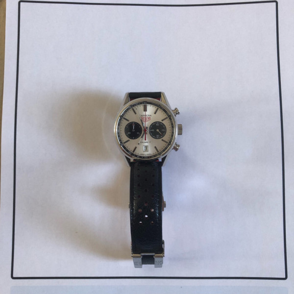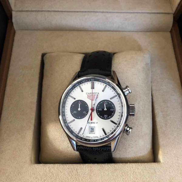 TAG Heuer Carrera CV211E Silver Dial Stainless Steel 41mm Automatic Chronograph Leather Strap Watch