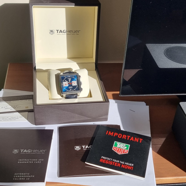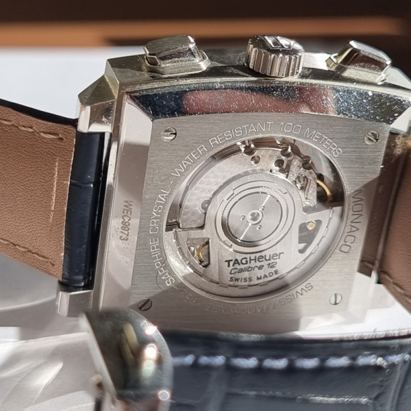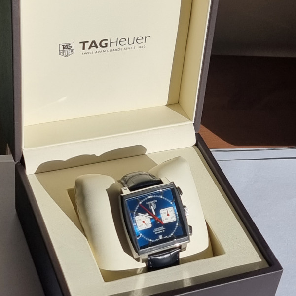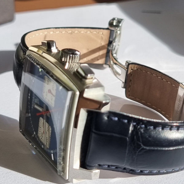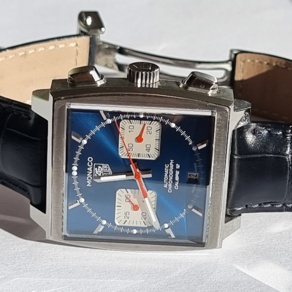 TAG Heuer Monaco CAW2111.FC6356 Blue Dial Stainless Steel 39mm Automatic Chronograph Leather Strap Watch